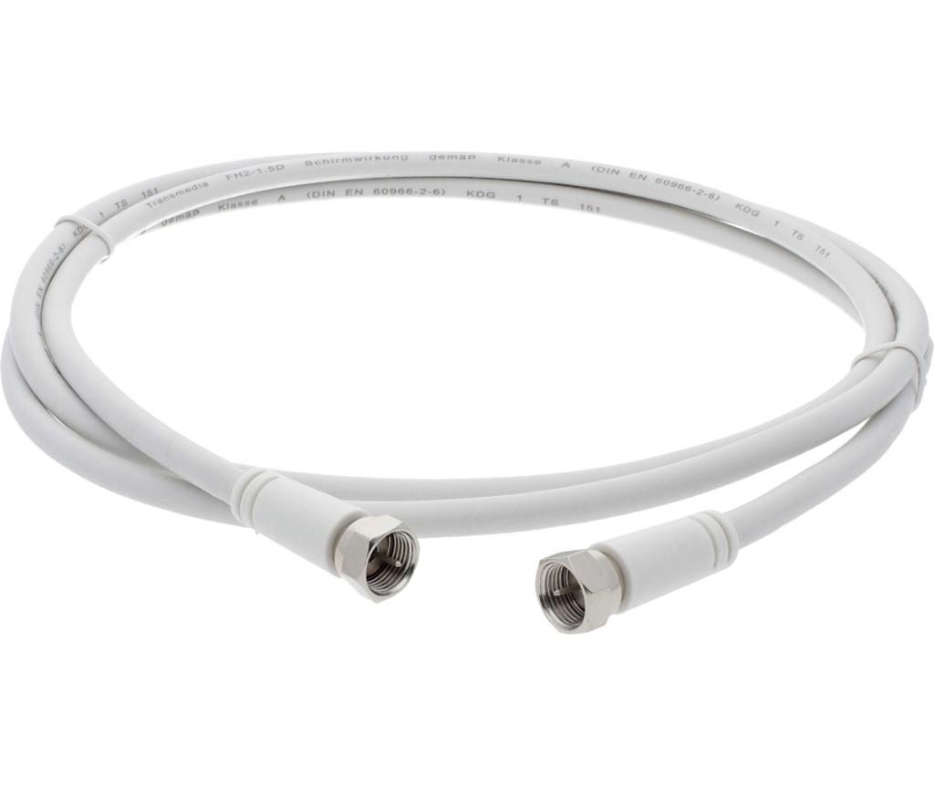 Modem-Anschlusskabel mit F-Steckern zum Anschluss eines Kabelmodems an den DATA-Port einer Multimedia-Antennensteckdose. Zur ­Sicherstellung des Schirmungsmaßes in der Praxis müssen die Anschluss­kabel einen Wickelradius von mindestens 10 cm besitzen, um eine dauerhafte Beschädigung der Schirmung und somit eine Verschlechterung der Schirmdämpfung auszuschließen!